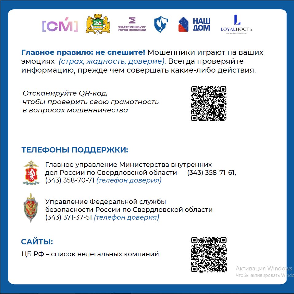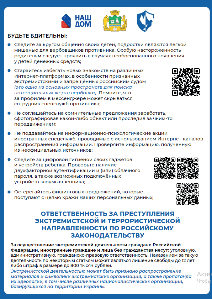 Вы можете оставить мнение о нашей организации Чтобы оценить условия осуществления образовательной деятельности наведите камеру Вашего телефона и отсканируйте QR-код. Перейдя по ссылке, Вы сможете: Оценить условия осуществления образовательной деятельности: - открытость и доступность информации об организации - комфортность условий осуществления образовательной деятельности - удовлетворенность условиями осуществления образовательной деятельности - доступность образовательной деятельности для инвалидов А также оставить отзыв Анкета доступна по QR-коду, а также по прямой ссылке: https://bus.gov.ru/qrcode/rate/416338 QR-код: